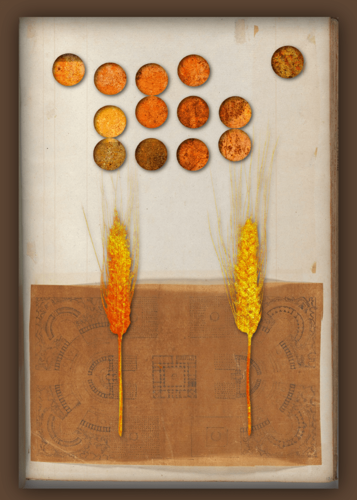 Surreal collage, botanical surrealism, mixed media, and visual poetry.
