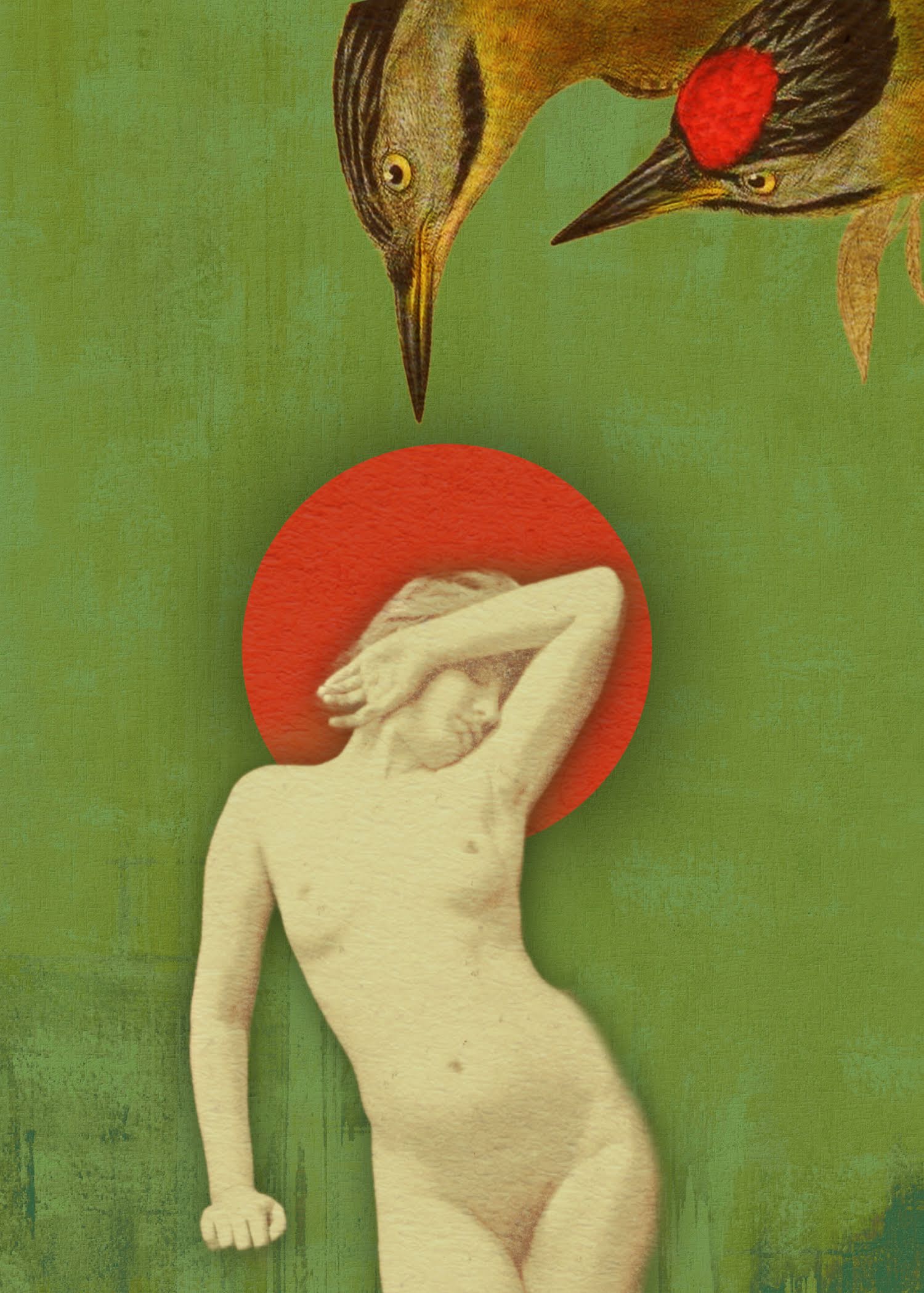 Postscript: I work these collages toward a painterly surface — adjusting tone, softening edges, and blending layers until the image reads as atmosphere and weight rather than cut parts.